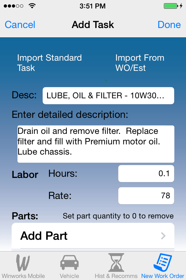 WRITE the Work Order– Start the Work Order right at the vehicle! Add standard tasks along with parts and labor from your iOS or Android Device.